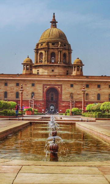Um monumento de guerra em homenagem aos soldados indianos, cercado por jardins tranquilos.